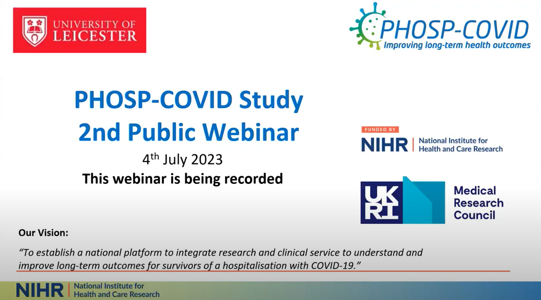 Listen back to our second public webinar recorded on 4th July 2023. In this recording you will hear from the study investigators and patient representatives about new findings and ongoing work within the PHOSP-COVID study collaboration.